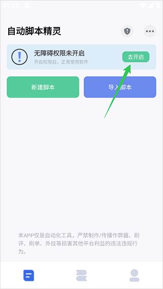 2、进入后会提示你在设置里打开一个按钮,然后录入一个脚本。