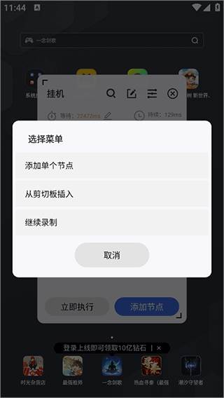 3、开启成功后即可打开游戏将需要挂机操作步骤用app录制下来