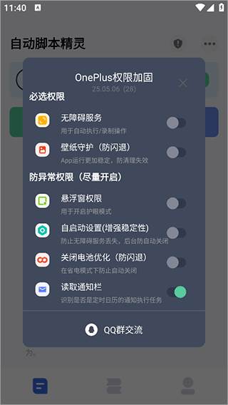 1、用户可以登录app后加群交流来获得脚本分享码