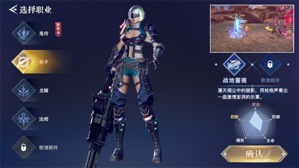 首先在职业介绍页面中我们可以看到,战地蔷薇在转职前就已经是同时掌握体术与枪械的职业,而转职后更是强化了她对重火力枪械的使用。