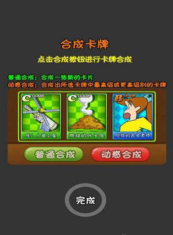 2.这时界面显示【普通合成】和【动感合成】两张方法。【普通合成】是合成一张新的卡牌,不过会有风险,可能合成的新卡牌会比你原来的卡牌等级还低;【动感合成】所得的新卡牌,其等级高于原始卡牌中的任意一张,不过,既然它如此好,肯定是需要付出代价的。